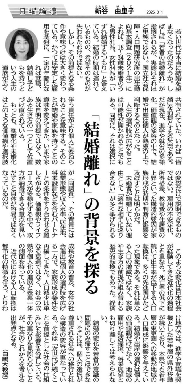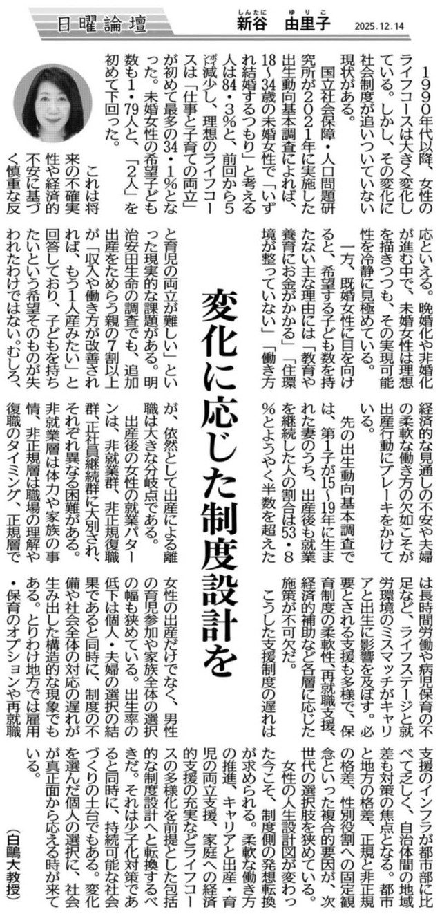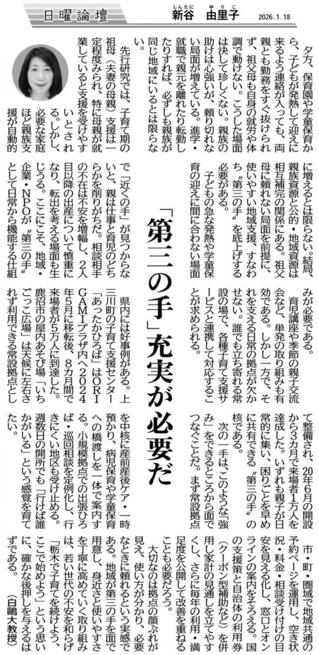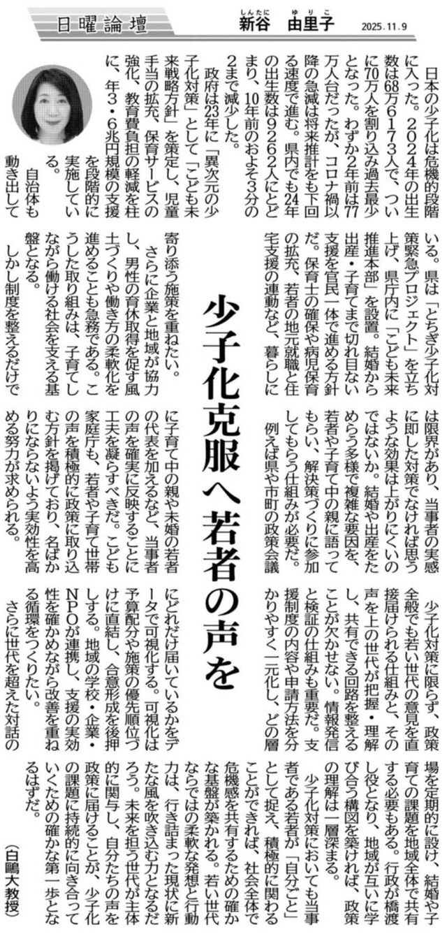 新谷由里子教授(教育学部)の寄稿が下野新聞「日曜論壇」に掲載されました