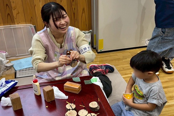 来場者数は、0歳から9歳までの子どもたちとその保護者などで150人を超え、学生たちも充実した一日となりました。また、昨年に引き続きご参加いただいた小山市公立園の若手保育士の先生方には積極的にご来場をお声掛けいただき、大盛況のイベントとなりました。