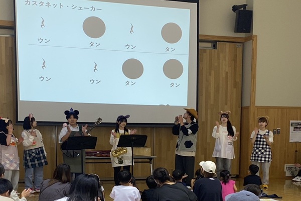 地域の子どもたちと直接触れ合う貴重な機会として、学生たちは連日遅くまで制作や演奏練習などの準備に励み、本番の日を迎えました。当日は予想を上回る多くのお客様にお越しいただき、会場には晴れやかな笑顔と明るい声があふれる、幸せな時間が流れました。