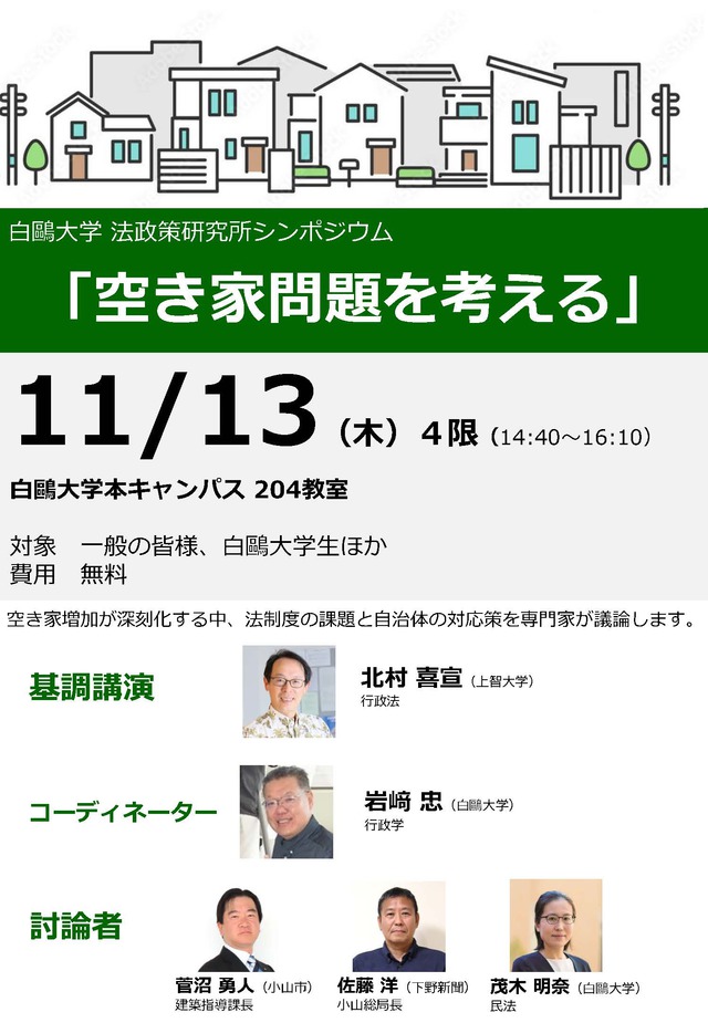 法政策研究所シンポジウム「空き家問題を考える」(11/13)
