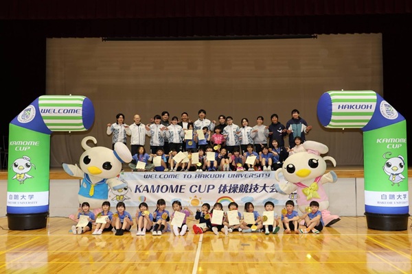 3月1日、大行寺キャンパス第一体育館において「第6回 KAMOME CUP 体操競技大会」を開催しました。本大会は学校体育で扱う器械運動レベルの演技構成を基本とし、年少の幼児から参加できる大会として企画しているものです。得点による上位入賞者の表彰に加え、子どもたち一人ひとりの良いところを称える特別賞(「元気玉賞」「スマイル賞」「フレンドシップ賞」「ネバーギブアップ賞」等)を設け、元気な挨拶や仲間を応援する姿勢などを表彰することで、挑戦意欲や自己肯定感を育む教育的工夫を重視しています。