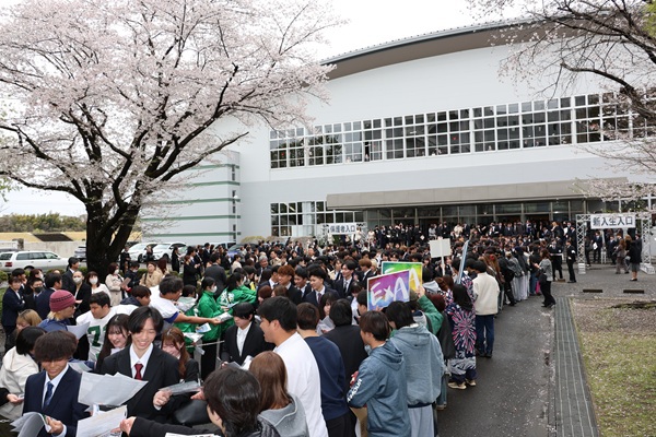 式典終了後、会場前で新入生を歓迎する部活動・同好会勧誘